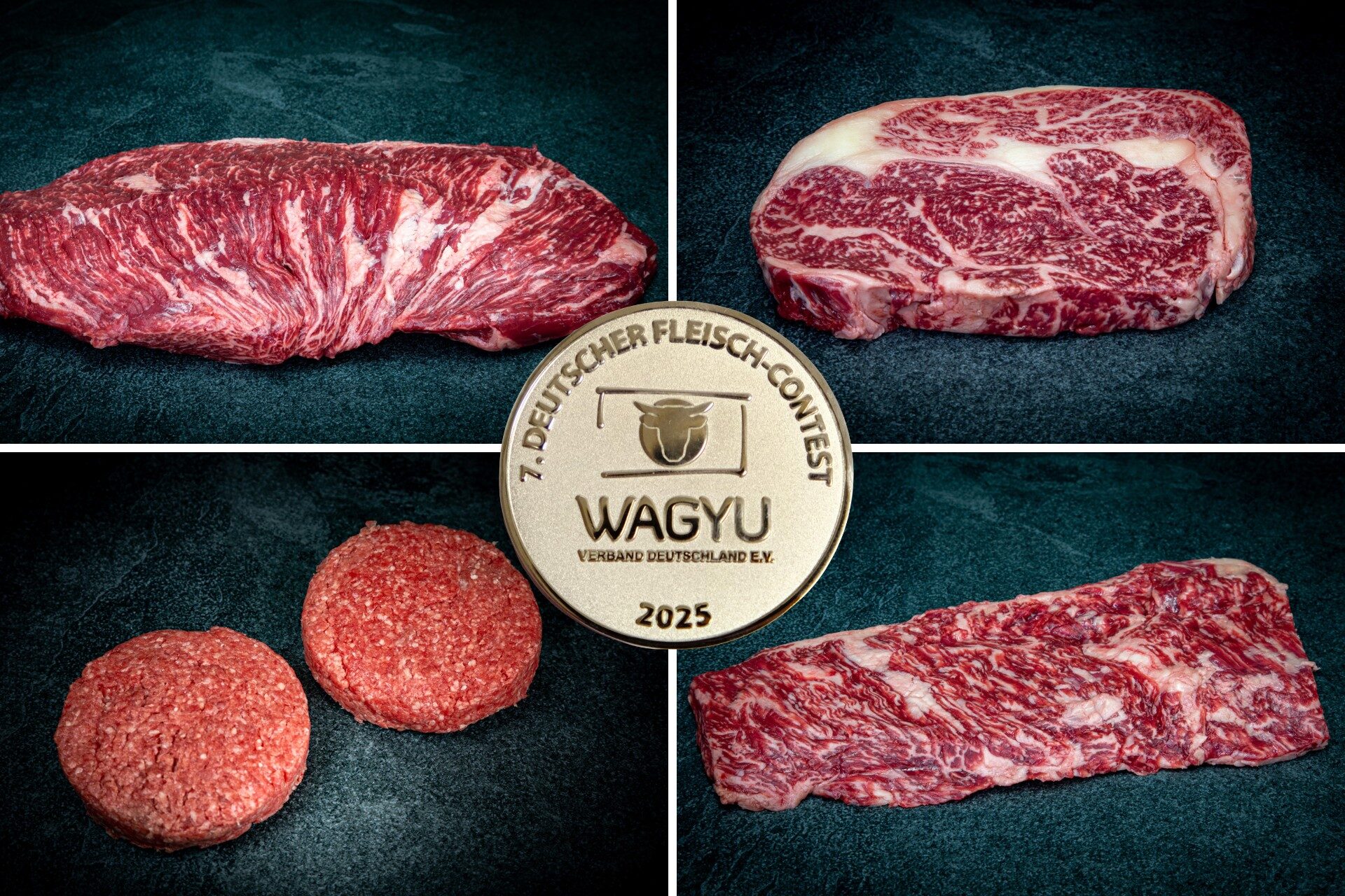 Nicht nur wir sind begeistert von unserem Wagyufleisch. Bei den letzten Wagyufleisch-Contest hat unser Rumpsteak bereits seine Qualität bewiesen. So belegten wir schon 3 x ein Platz auf dem Treppchen. Im Jahr 2024/2025 war es ein hervorragender zweiter Platz.